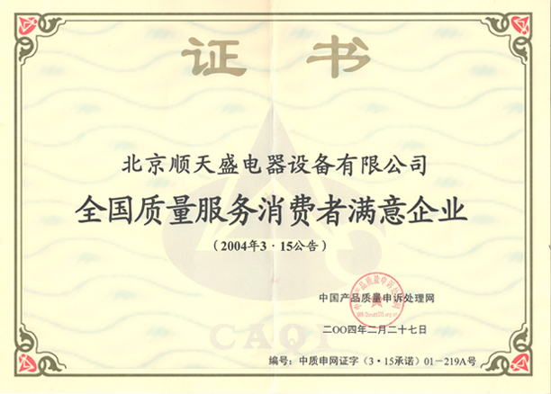 • 全國質(zhì)量服務(wù)消費(fèi)者滿意企業(yè)證書